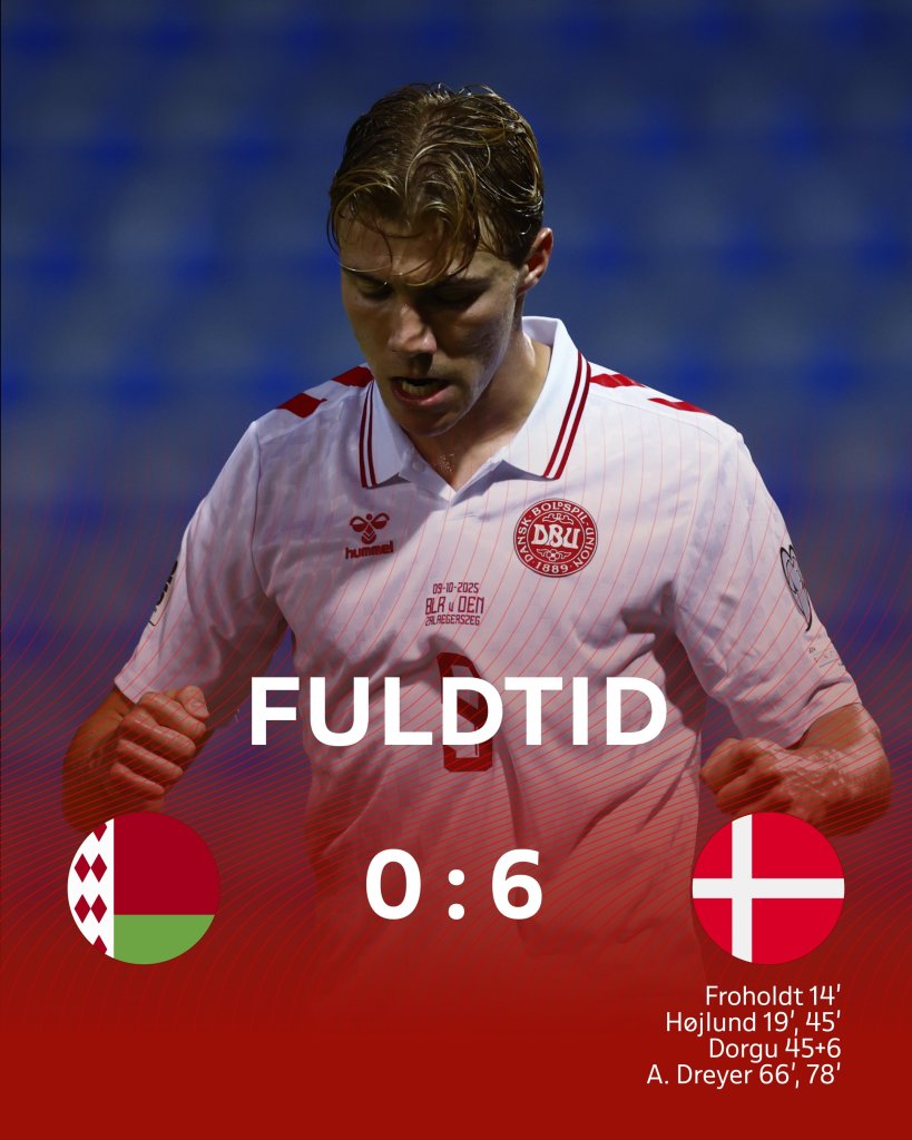 Η Δανία φιλοδώρησε με έξι τέρματα την αδύναμη Λευκορωσία(0-6) και συνεχίζει την αήττητη πορεία της στον 6ο όμιλο.