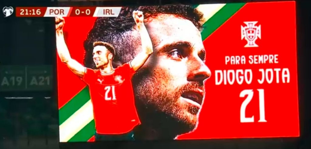 Στο 21ο λεπτό του ματς, όπως και ο αριθμός της φανέλας του αδικοχαμένου Πορτογάλου, τα matrix του γηπέδου έδειξαν φωτογραφία του, με τον κόσμο στο γήπεδο να σηκώνεται σύσσωμος και να χειροκροτεί σε ένα ανατριχιαστικό standing ovation.