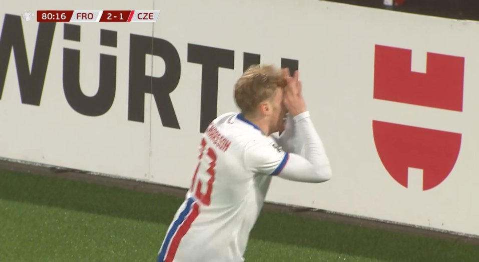 Και στο 67ο λεπτό τα Φερόε έφυγαν στην κόντρα, ο Αντρέασεν από αριστερά έστρωσε στον Σέρενσεν κι εκείνος πλάσαρε από το ύψος της περιοχής για το 1-0. Στο 78’ μετά από φάση διαρκείας στα καρέ των Φερόε, ο Κάραμπετς με κοντινό σουτ ισοφάρισε σε 1-1 αλλά στο 81’ ο Όλσεν πρόλαβε τους Βιτίκ και Κοβάρ, έστρωσε στον Άγκναρσον κι εκείνος πάσαρε σε κενό τέρμα για το 2-1.