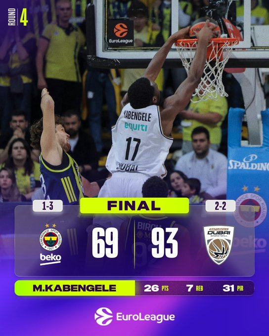 Η Ντουμπάι BC πήγε στην Πόλη και έκανε ένα... περίπατο κόντρα στην πρωταθλήτρια Φενερμπαχτσέ, την οποία κέρδισε με χαρακτηριστική άνεση μέσα στην Πόλη (69-93).