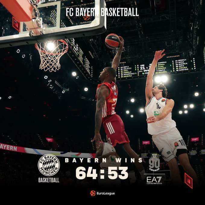 Η Μπάγερν πήρε την σκληρή «μάχη» κόντρα στην Αρμάνι στο Μόναχο (64-53) κι έφτασε στο 2-2 στην Εuroleague. Στο 1-3 η ομάδα του Ετόρε Μεσίνα.