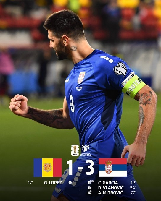 Η Σερβία πέρασε με 3-1 από την έδρα της Ανδόρας, μείωσε τη διαφορά της από την Αλβανία στον πόντο κι ελπίζει για τη 2η θέση.