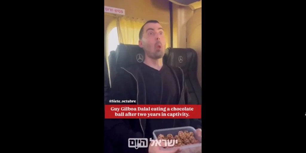 Guy Gilboa-Dalal after his release- imagine discovering food again...
