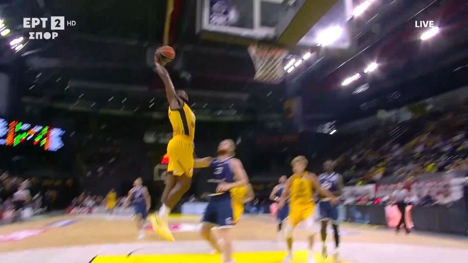 Με το σκορ στο 31-18 ο Μπάρτλεϊ έβγαλε πάσα ολόκληρου γηπέδου για τον Γκρέι και εκείνος με ενυτπωσιακό τρόπο κρεμάστηκε στην αντίπαλη ρακέτα προκαλώντας ενθουσιασμό στους οπαδούς της ΑΕΚ στις κερκίδες.