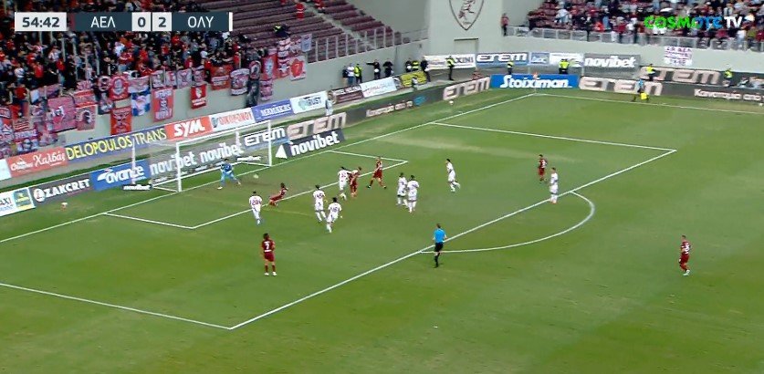 Κοντα στο να μειώσει το σκορ έφτασε η ΑΕΛ Novibet. Μετά από εκτέλεση φάουλ ο Μπαγκαλιάνης έκανε την προβολή αλλά δεν κατάφερε να βάλει δύναμη στην μπάλα και να απειλήσει άμεσα τον Τζολάκη.