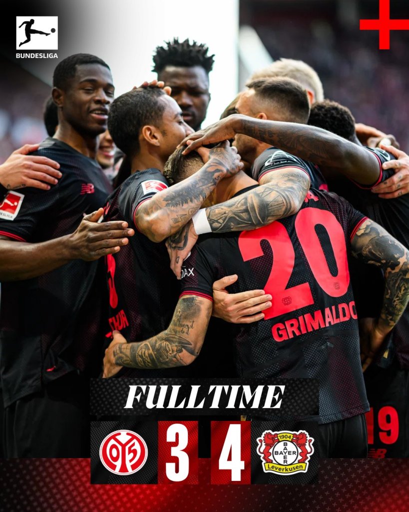 Στο 69', ο Νορντίν της Μάιντς βρέθηκε στο έδαφος, εντός μεγάλης περιοχής, έγινε χρήση VAR, ο διαιτητής έδωσε πέναλτι, ο Αμιρί ευστόχησε και η Μάιντς μείωσε σε 2-3 στο 71ο λεπτό. Τελικά, η Λεβερκούζεν "κλείδωσε" το τρίποντο στο 88ο λεπτό, με τον Τεριέρ, με διπλή προσπάθεια, να κάνει το 2-4. Στις καθυστερήσεις, η Μάιντς μείωσε, με τον Αμιρί, για το τελικό 3-4.