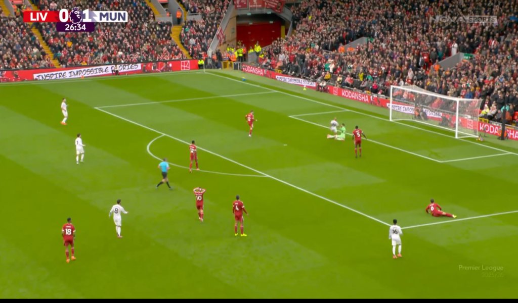 Στο 27ο λεπτό, οι παίκτες της Μάντσεστερ Γιουνάιτεντ σπατάλησαν διπλή ευκαιρία για το 0-2, μέσα στο "Άνφιλντ". Ο γκολκίπερ Μαμαρντασβίλι της Λίβερπουλ πρώτα σταμάτησε τον Μπεμό, εξ επαφής, και, στη συνέχεια, απέκρουσε μακρινό σουτ του Μέισον Μάουντ.