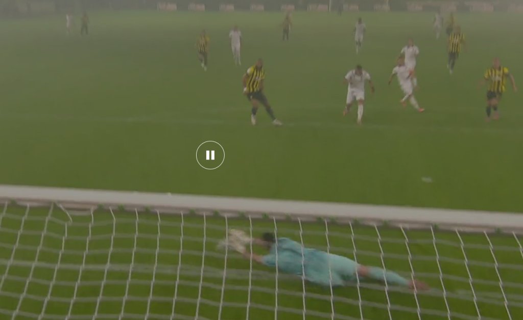 Λάθος γύρισμα του Γκρούγιτς στον Μουκουντί, έκλεψε ο Ζίβκοβιτς έξω απο την περιοχή της ΑΕΚ, έδωσε στον Γιακουμάκη, έκανε το σουτ έβγαλε ο Στρακόσια.