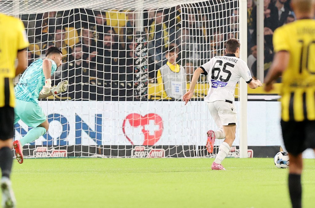 Τραγικό λάθος του Μουκουντί στη σέντρα! "Κόλλησε", πιέστηκε απο τον Ζίβκοβιτς, δεν γύρισε δυνατά τη μπάλα πίσω στον Στρακόσια, έτρεξε ο Κωνσαντέλια, πήρε τη μπάλα, προσποιήθηκε στον τερματοφύλακα της ΑΕΚ και σε κενή εστία έγραψε το 0-2