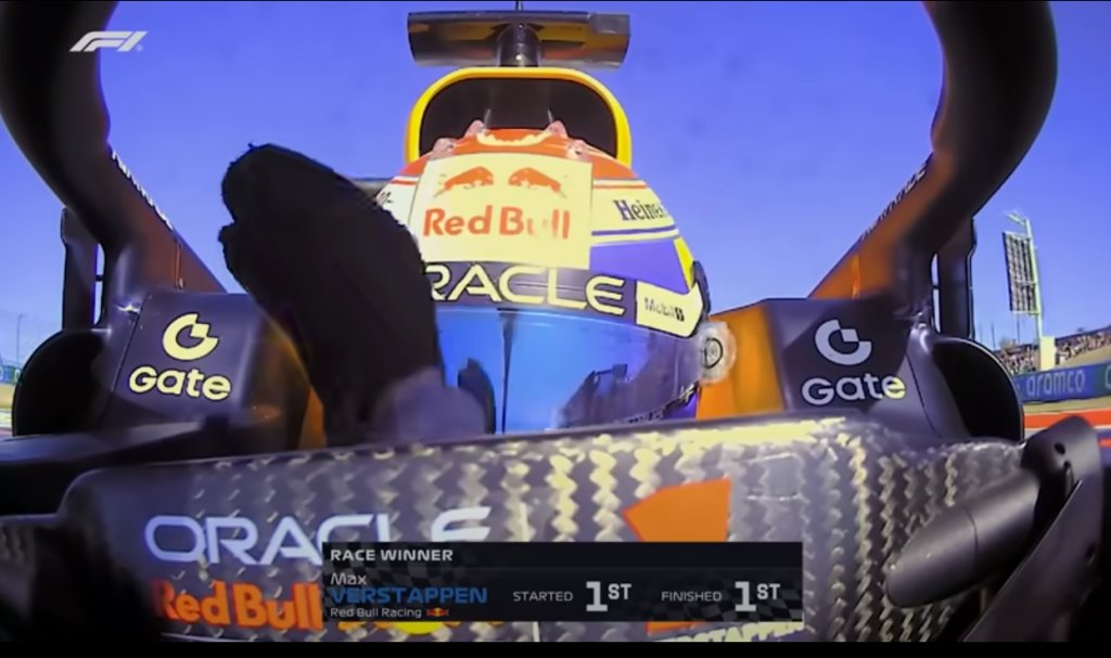 Οι άλλοι δυο διεκδικητές του τίτλου, Λάντο Νόρις και Όσκαρ Πιάστρι, τερμάτισαν στη δεύτερη και πέμπτη θέση αντίστοιχα. Στο βάθρο ανέβηκε και ο Σαρλ Λεκλέρ της Ferrari.