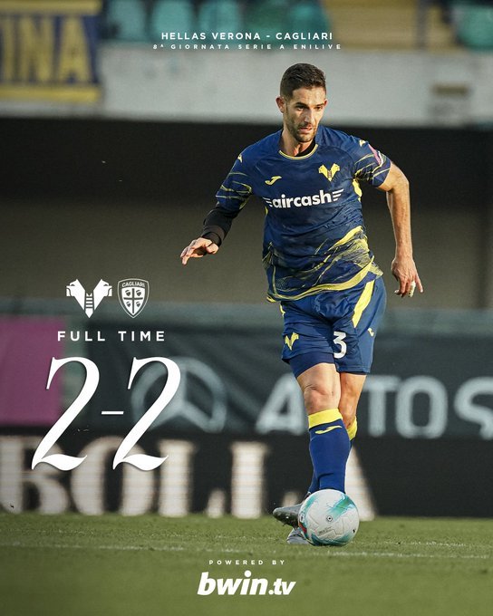 Τι κι αν βρέθηκε να νικά ε 2-ο, η Βερόνα κόλλησε στο 2-2 με την Κάλιαρι και δεν έχει ακόμη νίκη στο πρωτάθλημα.
