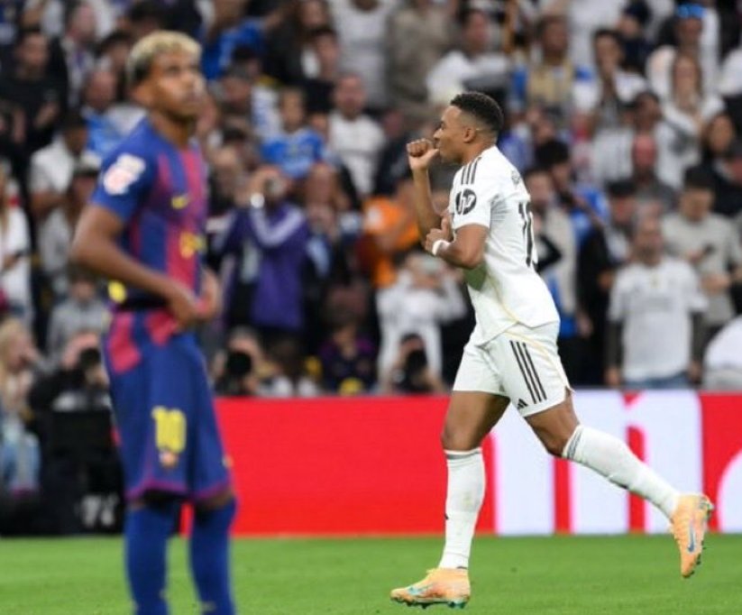 Μόλις στο 2ο λεπτό ο διαιτητής έδωσε πέναλτι στους γηπεδούχους. Το VAR όμως τον κάλεσε και άλλαξε την απόφαση του σε επιθετικό φάουλ του Βινίσιους στον Γιαμάλ διορθώνοντας το λάθος. Στο 12’ ο Εμπαπέ σκόραρε, με ένα τρομερό σουτ έξω από την περιοχή, όμως η τεχνολογία έδειξε ότι ήταν εκτεθειμένος για ελάχιστα εκατοστά. Η Ρεάλ συνέχισε να πιέζει και στο 22’ ο Εμπαπέ έφυγε στην πλάτη της άμυνας της Μπαρτσελόνα και με πλασέ έγραψε το 1-0. Επτά λεπτά μετά ο Γάλλος γύρισε ωραία και σούταρε με τον Σέζνι να διώχνει. Δευτερόλεπτα μετά ο Χάουσεν με προβολή δεν κατάφερε να νικήσει τον γκολκίπερ της Μπάρτσα.