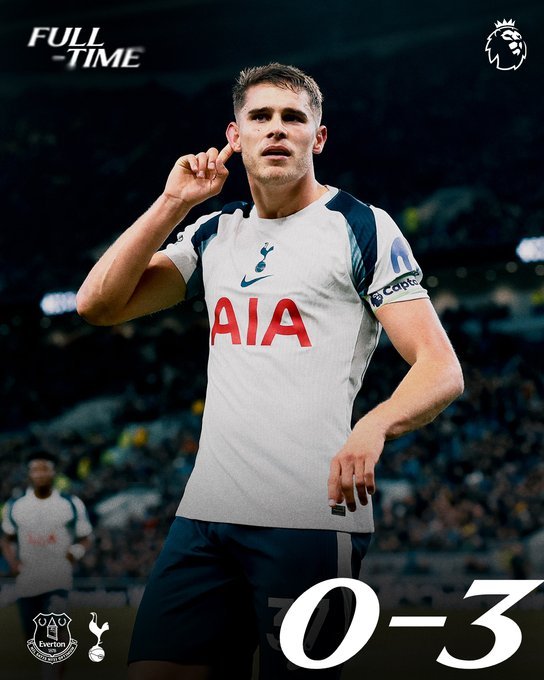 Η Τότεναμ πέρασε με 3-0 από την έδρα της Έβερτον, έχοντας τον Μίκι Φαν ντε Φεν σε μεγάλη βραδιά κι έπιασε τριάδα. Πρώτη ήττα της την Έβερτον στο νέο της στάδιο.
