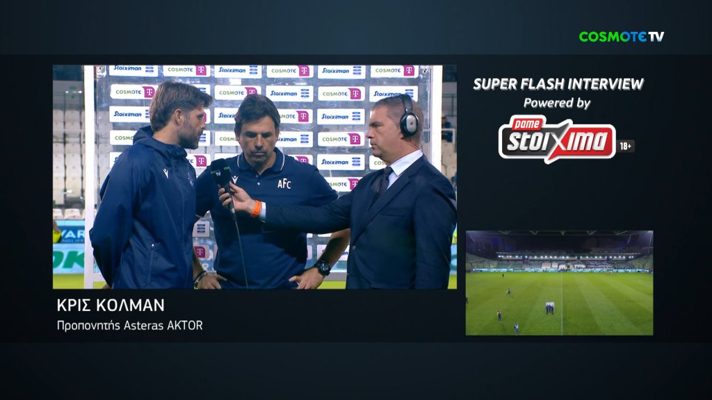 Ο Asteras AKTOR ηττήθηκε 2-0 από τον Παναθηναϊκό, με τον Κρις Κόλμαν να εκφράζει τα έντονα παράπονά του για τη διαιτησία στην κάμερα της Cosmote TV μετά το τέλος του αγώνα.