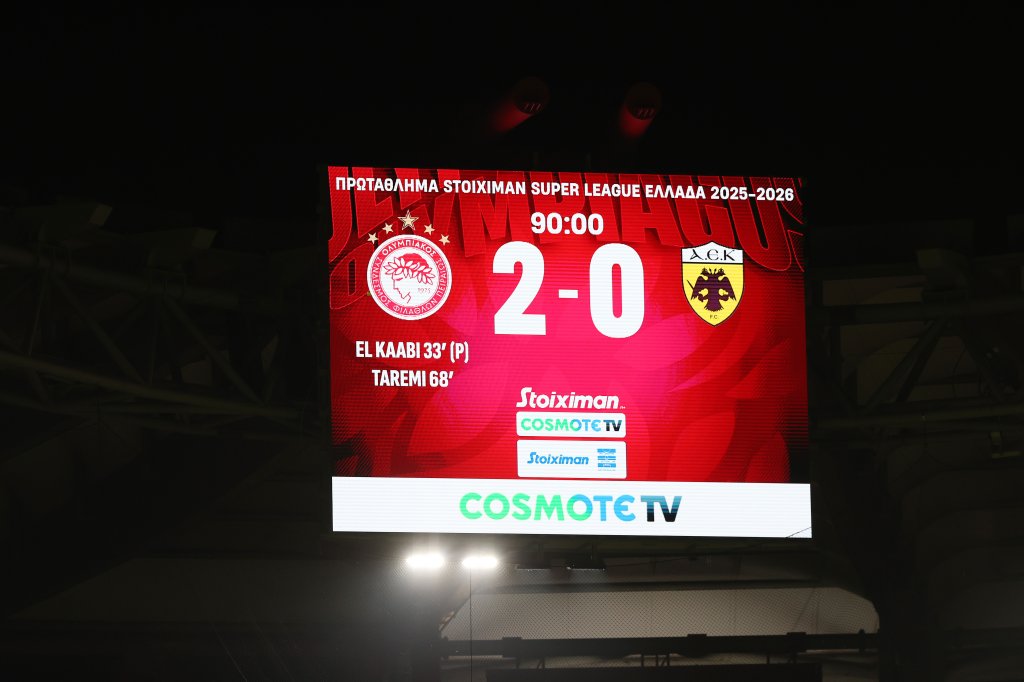 Η ΑΕΚ γνώρισε την ήττα με 2-0 στο Καραϊσκάκη από τον Ολυμπιακό. Πλήρωσε τα λάθη της και έχασε για δεύτερο σερί ντέρμπι. Δείτε τα δύο γκολ και τις σημαντικότερες φάσεις της αναμέτρησης: