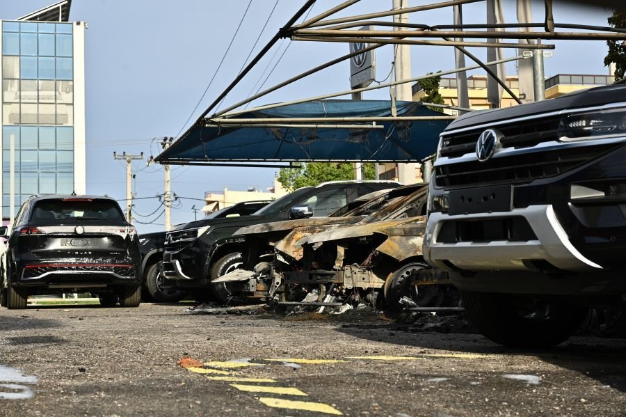 Σύμφωνα με πληροφορίες, η κάμερα της επιχείρησης έχει καταγράψει τις κινήσεις των δραστών την ώρα που κατευθύνονται πεζοί από την οδό Θεσσαλονίκης προς την είσοδο της εταιρείας. Αρχικά πετούν τα μπουκάλια με την βενζίνη σε ένα ΙΧ που είναι σταθμευμένο μπροστά από την έκθεση αυτοκινήτων ενώ στη συνέχεια εκτοξεύουν τα υπόλοιπα μπουκάλια στο διπλανό πάρκινγκ, όπου είναι παρκαρισμένα τα υπόλοιπα οχήματα, και τρέπονται σε φυγή.