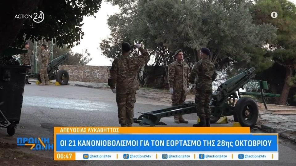 Ο πρώτος κανονιοβολισμός έπεσε στις 6 :47 το πρωί. Ακολούθησαν 21 κανονιοβολισμοί, όπως προβλέπει το πρωτόκολλο, από το πυροβολείο του Λυκαβηττού ανήμερα της εθνικής επετείου.
