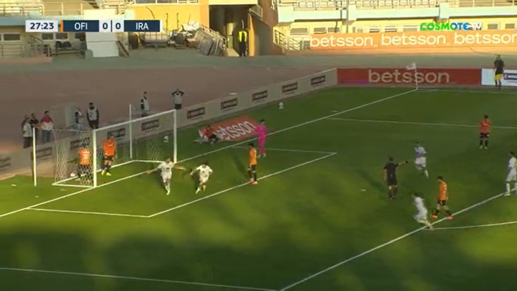 Μετά από την εκτέλεση φάουλ, ο Ντουρμισάι κάνει την κεφαλιά πάσα και ο Κούστα με ωραίο τσίμπημα εκτελεί τον Λίλο για το 1-0 στο 28'