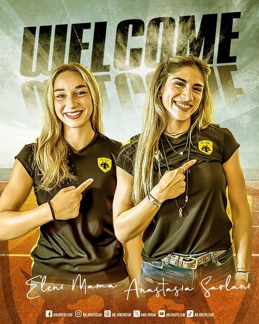 H AEK βρίσκεται στην ευχάριστη θέση να ανακοινώσει την έναρξη της συνεργασίας της με τις Αναστασία Σαρλάνη και Ελένη Μαμά. Η Αναστασία είναι γεννημένη στις 17 Νοεμβρίου του 1999 και η Ελένη στις 21 Μαΐου του 2007. Αμφότερες θα ενισχύσουν το τμήμα Στίβου της ομάδας μας.
