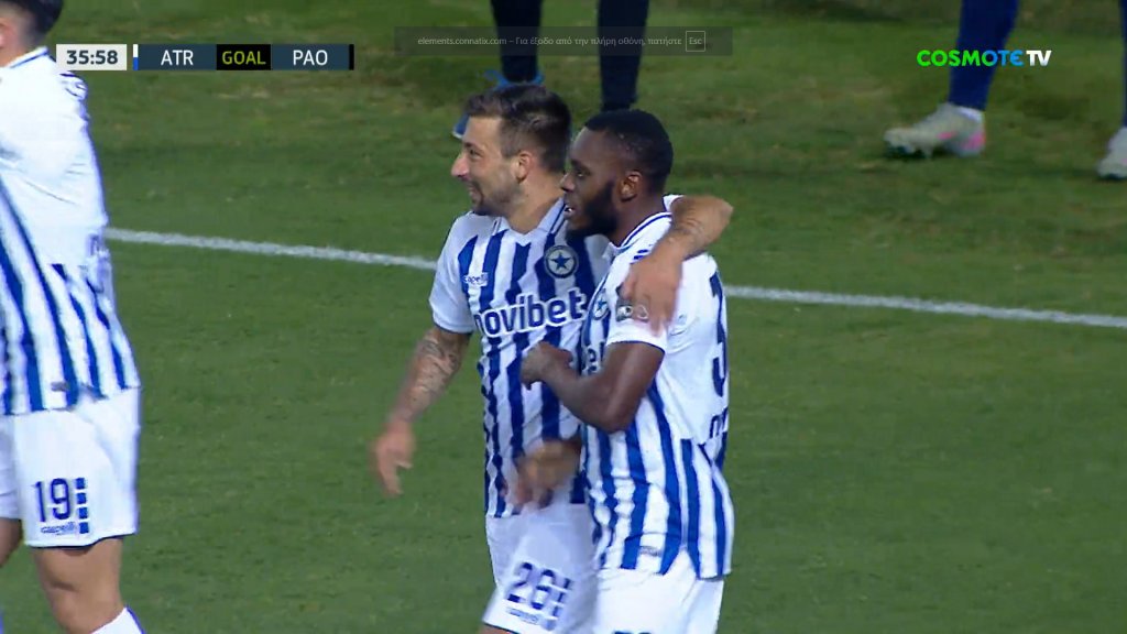 1-0 ο Ατρόμητος με τον Μπάκου να σκοράρει με κεφαλιά από κοντά, μετά την πρώτη κεφαλιά του Σταυρόπουλου στο 36'