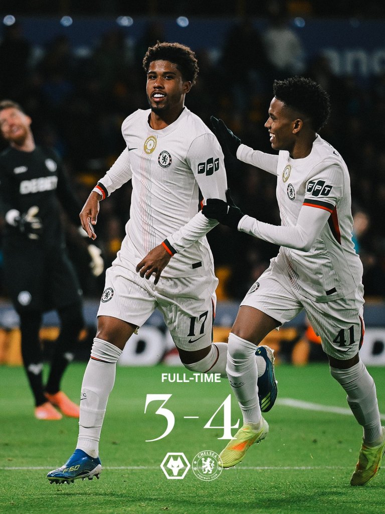 Στο "Μολινό", η Τσέλσι προηγήθηκε 3-0 στο ημίχρονο, μέσα στην έδρα της Γουλβς, ωστόσο, ζορίστηκε μέχρι να προκριθεί στην επόμενη φάση του Carabao Cup. Με δυο ασίστ του Γκίτενς, η Τσέλσι προηγήθηκε 0-2 στο 15ο λεπτό, χάρη σε τέρματα των Αντρέι Σάντος και Ταϊρίκ Τζορτζ. Στο 41', ο Εστεβάο ανέβασε τον δείκτη του σκορ, η Γουλβς όμως δεν τα παράτησε και μείωσε με τέρματα των Αροκοντάρε (48') και Βόλφε (73'). Η Τσέλσι έμεινε και με δέκα παίκτες, αλλά, στο 89' ο Γκίτενς έκανε το 2-4, με τη Γουλβς να διαμορφώνει το τελικό 3-4, με γκολ του Βόλφε στις καθυστερήσεις.