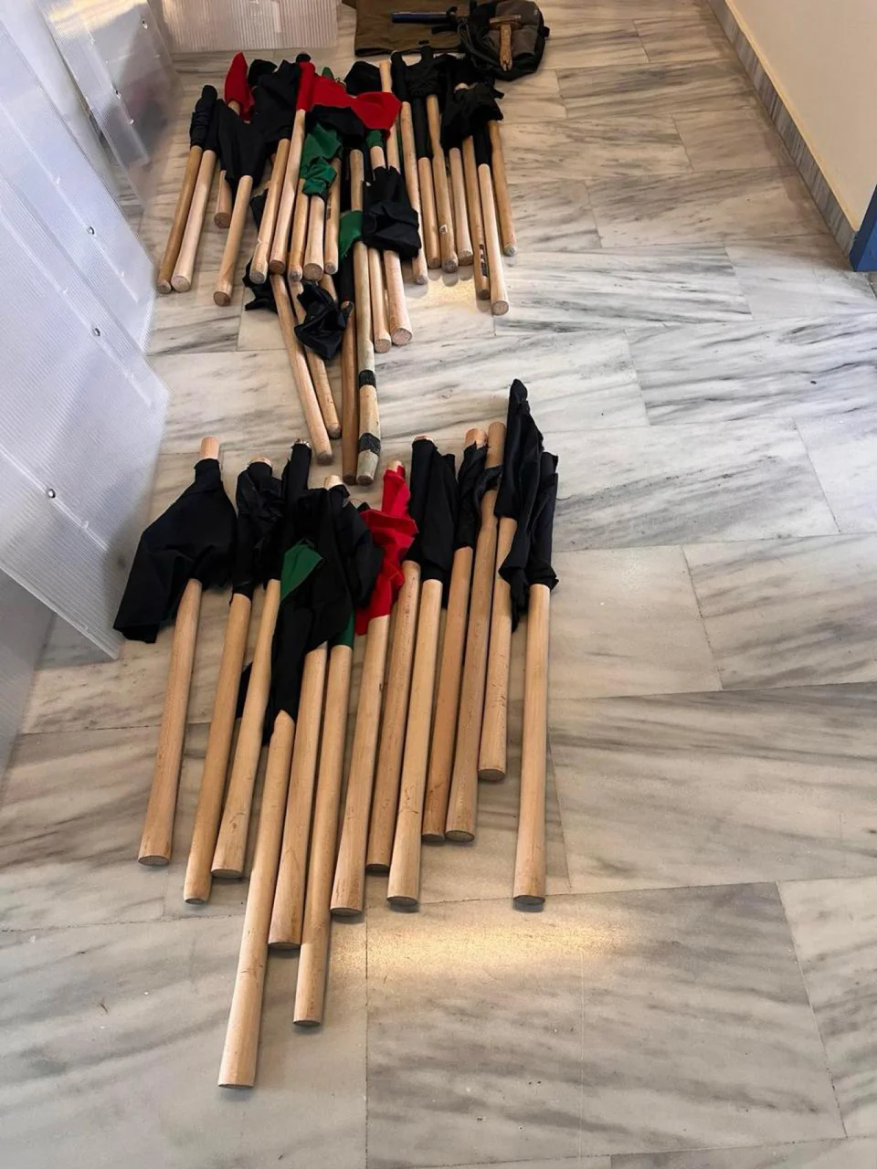 - 38 ρόπαλα – ξύλινα κοντάρια,