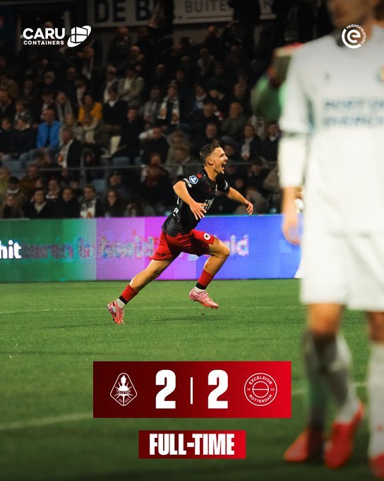 Στο 2’ ο Φαν ντερ Καμπ έδωσε το προβάδισμα στη Τέλσταρ και στο 28’ ο Οβούσου έδωσε αέρα δύο τερμάτων στους γηπεδούχους. Στο 45+1’ η Εξέλσιορ μείωσε σε 2-1 με πέναλτι του Ζάγκρε, ενώ στο 59’ οι γηπεδούχοι είχαν χαμένο πέναλτι με τον Μπάκερ. Στο 74’ η Εξέλσιορ κέρδισε και 2ο πέναλτι, ο Ζάγκρε ανέλαβε ξανά την εκτέλεση αλλά αστόχησε. Τελικά στο 77’ οι φιλοξενούμενοι ισοφάρισαν με τον Ντε Ρεχτ.