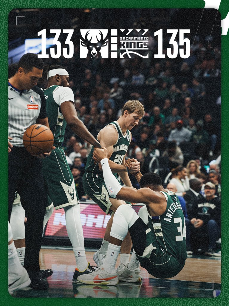 Το εξαιρετικό ξεκίνημα των Μιλγουόκι Μπακς και του Γιάννη Αντετοκούνμπο δεν είχε συνέχεια, με τους Σακραμέντο Κινγκς να παίρνουν τη νίκη, εκτός έδρας, με 135-133. Ο Έλληνας φόργουορντ έφτασε σε νταμπλ-νταμπλ, πάλεψε για την ομάδα του, αλλά, δευτερόλεπτα πριν το τέλος, έκανε λάθος που στοίχισε.