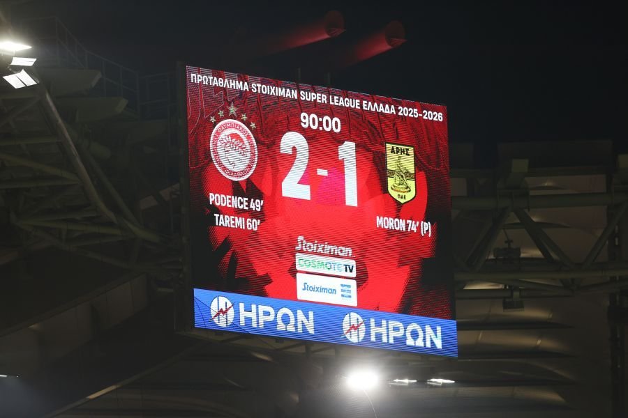 Παίζοντας με δέκα παίκτες από το 71ο λεπτό, ο Ολυμπιακός νίκησε 2-1 τον Άρη στο Φάληρο. Στο 49ο λεπτό, ο Ντάνιελ Ποντένσε άνοιξε το σκορ και, στο 60', έδωσε την ασίστ στον Ταρέμι για το 2-0. Στο 71ο λεπτό, ο Μάνσα έκανε πέναλτι και αποβλήθηκε, με τον Άρη να μειώνει με τον Μορόν στο 74'. Η ομάδα της Θεσσαλονίκης είχε ευκαιρίες για την ισοφάριση, αλλά ο Τζολάκης έσωσε τον Ολυμπιακό, που κράτησε το προβάδισμα και βρίσκεται πρώτος με 22 βαθμούς. Όγδοος ο Άρης με 12 βαθμούς.
