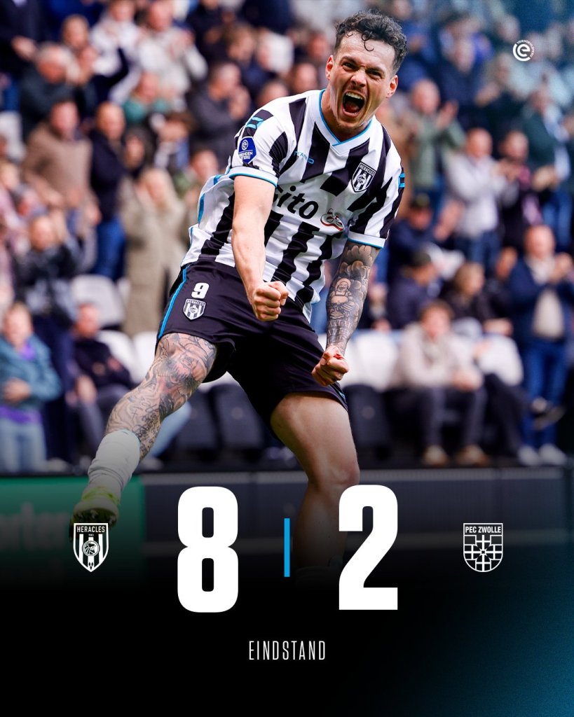 Η δεύτερη νίκη της Χέρακλες, στην εφετινή Eredivisie, ήρθε με εκκωφαντικό τρόπο. Η ομάδα του Άλμελο, έχοντας υπηρεσιακό προπονητή, υποδέχτηκε τη Τσβόλε, που μάχεται και εκείνη για τη σωτηρία, και τη διέλυσε με 8-2.