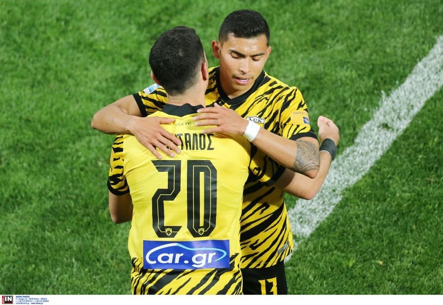 Με γκολάρα του Ορμπελίν Πινέδα, στο 92', η ΑΕΚ νίκησε τον Παναιτωλικό και ο Πέτρος Μάνταλος έσπευσε να αποθεώσει τον Μεξικανό.