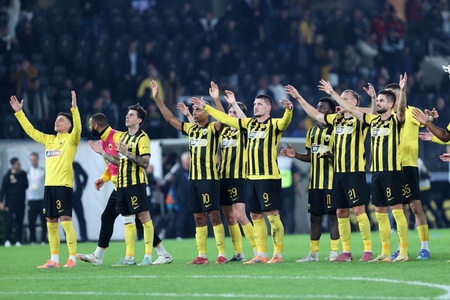 Οι ποδοσφαιριστές της ΑΕΚ στάθηκαν μπροστά στην εξέδρα των οργανωμένων και χειροκροτούσαν, ακούγοντας τα τραγούδια των φίλων της Ένωσης.