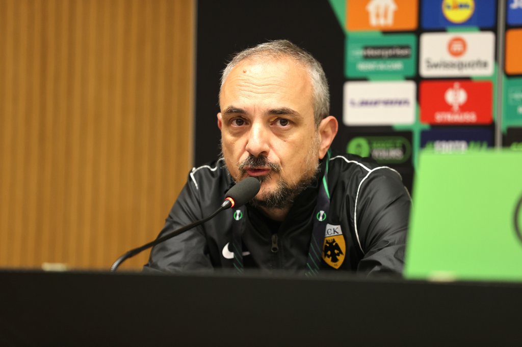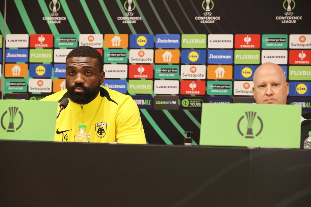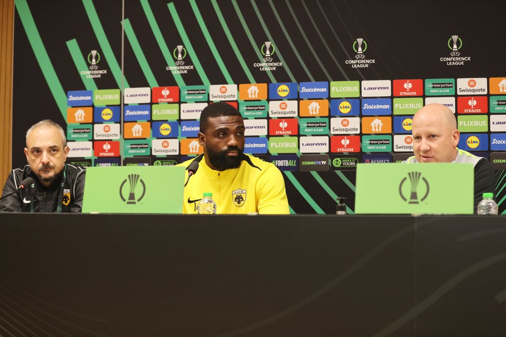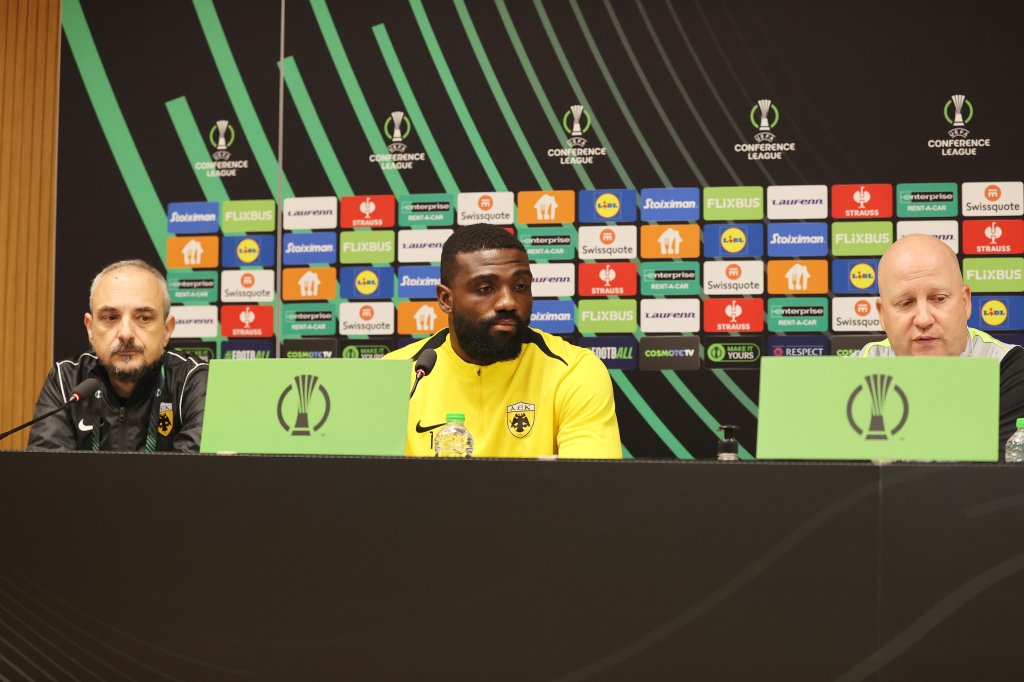 Στην αίθουσα Τύπου της «Αγιά Σοφιάς-ΟΠΑΠ Αρένα» Μάρκο Νικολιτς και Φραντζί Πιερό μίλησαν στους εκπροσώπους του Τύπου για το παιχνίδι της ΑΕΚ με τη Σάμροκ Ρόβερς στα πλαίσια της 3ης αγωνιστικής της League Phase του Conference League. Το aek365 βρέθηκε εκεί και σας μεταφέρει φωτογραφικό ρεπορτάζ.