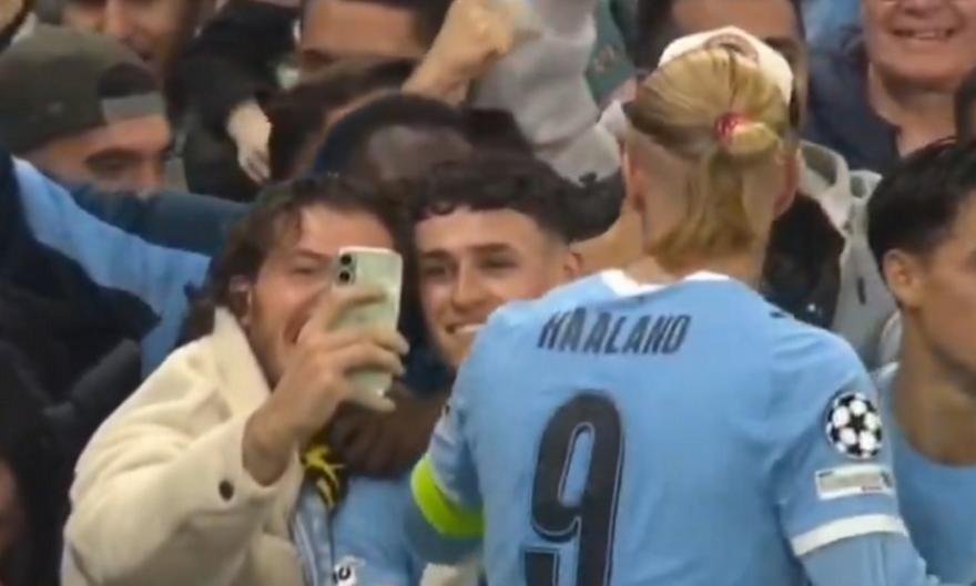 Ένας οπαδός, αν και με κασκόλ... μισό - μισό, από αυτά που απεχθάνονται οι υπόλοιποι στις εξέδρες, είχε την τεράστια τύχη να βρεθεί στο σημείο όπου επέλεξε ο Φόντεν να πανηγυρίσει το πρώτο από τα δυο γκολ που πέτυχε για τη Σίτι, στο 4-1 επί της Μπορούσια Ντόρτμουντ στο Etihad. Ο Άγγλος επιθετικός σκόραρε με πανομοιότυπο τρόπο, με το αριστερό πλασέ του που συνηθίζει να κατευθύνεται στα δίχτυα και έφυγε προς το κόρνερ για να βρεθεί στην αγκαλιά των φίλων των «πολιτών». Ένας απ' αυτούς είχε «οπλίσει» το κινητό και έβγαλε μια selfie για την οποία πόζαρε και ο ποδοσφαιριστής πάνω στην ευφορία της στιγμής, με τη φωτογραφία να δημοσιοποιείται άμεσα και να κάνει τον γύρο του διαδικτύου.
