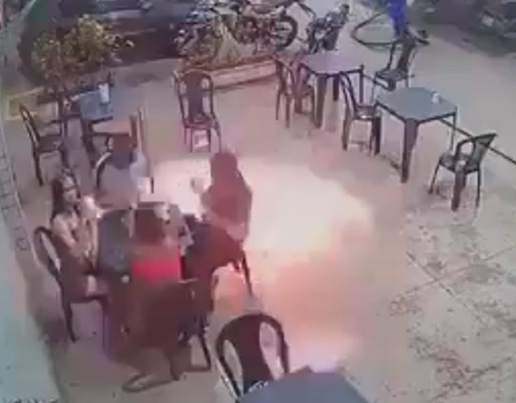 Ο καπνιστής και οι φίλοι του που βρίσκονταν στα τραπέζια έτρεξαν να γλιτώσουν. Την ίδια στιγμή, ένας άνδρας έβαζε βενζίνη στο φορτηγό του, λίγα μέτρα μακριά από τις φλόγες. Κανείς δεν τραυματίστηκε από το περιστατικό ενώ υπάλληλος του βενζινάδικου πήρε ένα πυροσβεστήρα για να σβήσει τη φωτιά.