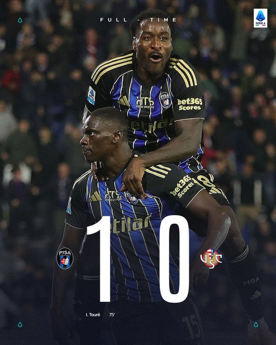 Και τελικά, στο 75’ ο Τουρέ εκμεταλλεύτηκε την «γλυκιά» σέντρα του Τραμόνι από τα αριστερά και με καρφωτή κεφαλιά δεν άφησε περιθώρια αντίδρασης στον Αουντέρο, έγραψε το τελικό 1-0 και χάρισε στη Πίζα την πρώτη της νίκη στο πρωτάθλημα!