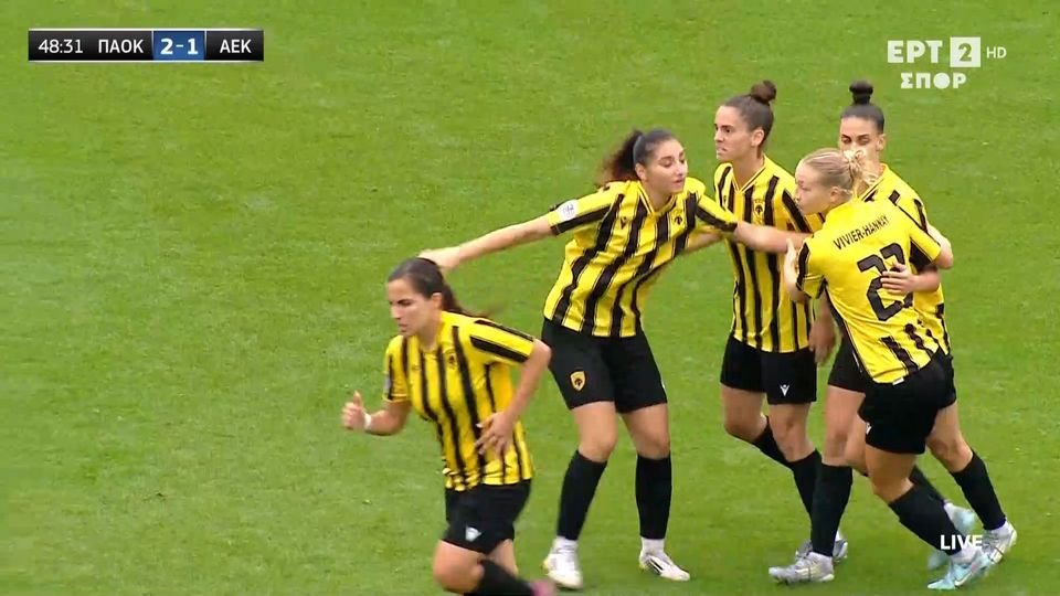 Η ΑΕΚ πήγε στο ημίχρονο πίσω στο σκορ με 2-0. Στην επανάληψη η ομάδα κατάφερε να μειώσει σε 2-1 στο 48' με γκολ της Βιολάρη.