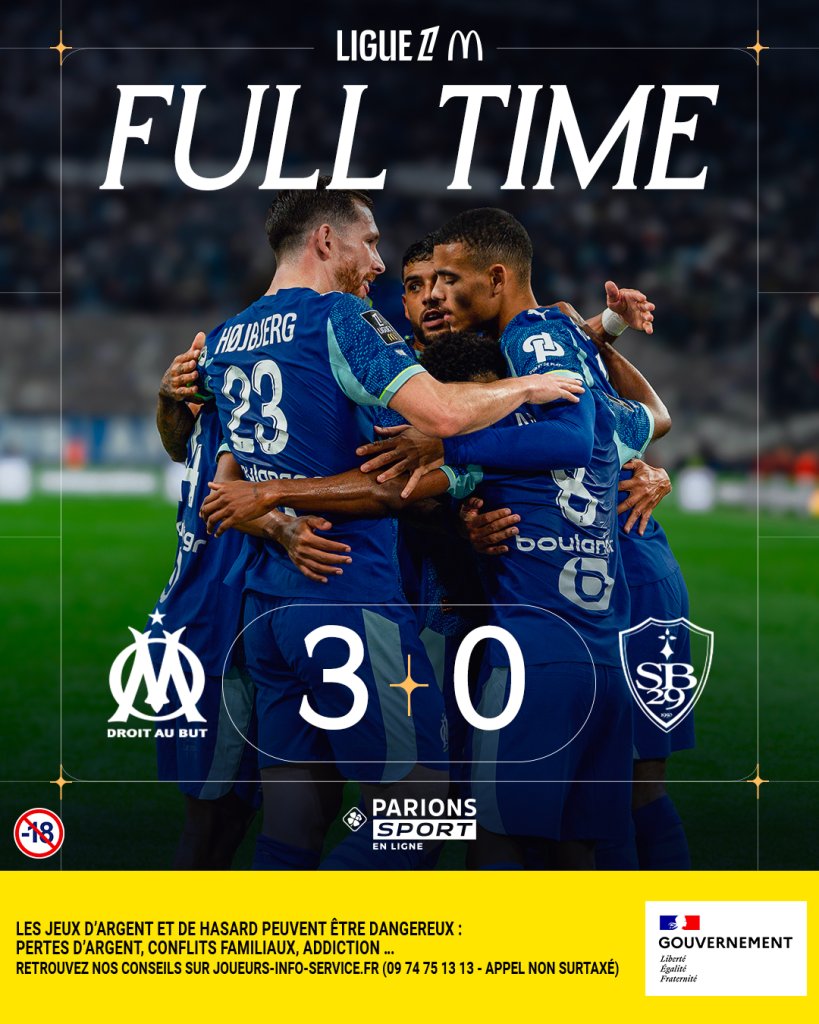 Στο "Βελοντρόμ", η Μαρσέιγ δεν δυσκολεύτηκε να κάμψει την αντίσταση της Μπρεστ, νίκησε 3-0 και ανέβηκε κορυφή, περιμένοντας το αυριανό παιχνίδι της Παρί Σεν Ζερμέν, στην έδρα της Λιόν.