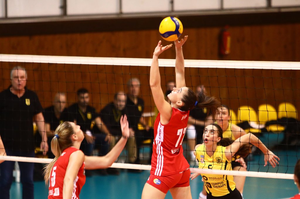 Νωρίς πήρε προβάδισμα στο πρώτο σετ ο Ολυμπιακός, καθώς μετά το αρχικό 5-6 η Αμπντεραχίμ πήγε στο σερβίς και ηγήθηκε ενός σερί της 6-0 της ομάδας της. Ο Άρης δεν παρέδωσε τα όπλα και μείωσε έως το 13-15 με τη Μερτέκη και κρατήθηκε κοντά έως το 15-17. Εκεί η Κούμπουρα πήρε την αλλαγή (15-18) και από εκεί και πέρα οι φιλοξενούμενες δεν έχασαν πόντο με «όπλο» το πολύ καλό σερβίς της Ντι Ιούλιο και κατέκτησαν το σετ με 15-25.