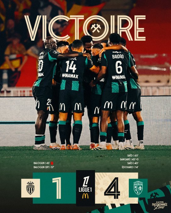Η Λανς άνοιξε το σκορ στο 21ο λεπτό με τον Εντουάρ ενώ στο 37’ ο Μπαλογκάν ισοφάρισε με πέναλτι αλλά στο 40’ ο Σαΐντ έγραψε το 1-2. Μάλιστα στο 45ο λεπτό η Μονακό έμεινε και με δέκα παίκτες, καθώς αποβλήθηκε ο Μπαλογκάν και στο 45+3’ ο Σανγκαρέ έκανε το 1-3. Στο 60ο λεπτό η Λανς έκανε το 1-4 με το 2ο γκολ του Σαΐντ