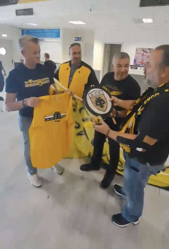 Μεταξύ άλλων δώρων, στον Ηλιόπουλο έδωσαν ένα χειροποίητο ψηφιδωτό, με θέμα την ΑΕΚ, που το είχε φτιάξει ένας φίλος της Ένωσης.
