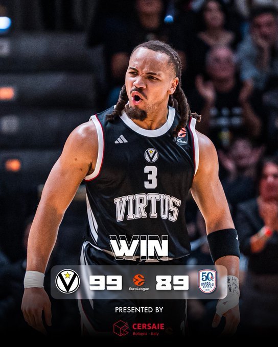 Με μία εντυπωσιακή καταιγίδα η Βίρτους Μπολόνια πανηγύρισε ξανά νίκη στην Ευρωλίγκα μετά από τρεις απανωτές ήττες. Για την 10η αγωνιστική του θεσμού οι Ιταλοί φιλοξένησαν την Αναντολού Εφές και με το εμφατικό 99-89 έφτασαν το ρεκόρ τους στο 5-5. Οι Τούρκοι έπεσαν στο 3-7 και συνεχίζουν να αποδεικνύουν ότι η φετινή τους σεζόν είναι γεμάτη προβλήματα.