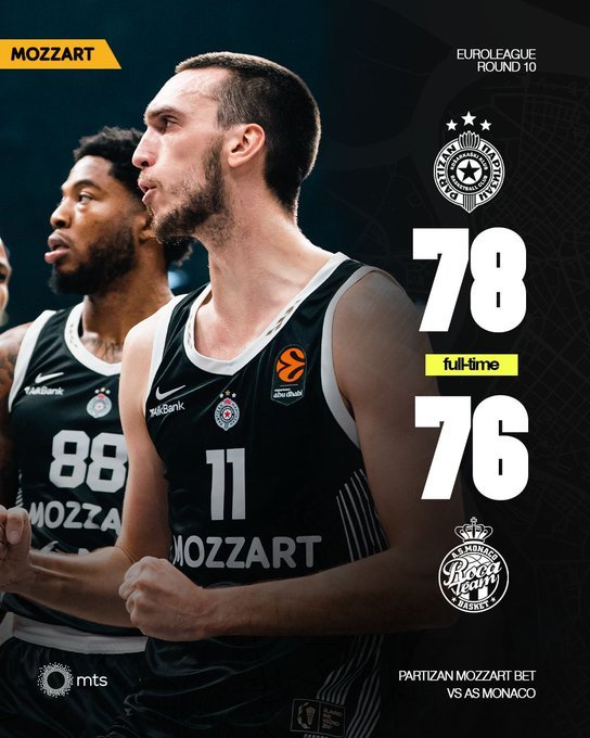 Με ένα τρομερό ξέσπασμα στο δεύτερο ημίχρονο, η Παρτίζαν πανηγύρισε μια ευρεία νίκη απέναντι στη Μονακό. Ο Ζέλικο Ομπράντοβιτς πήρε αυτήν τη «μάχη» από τον Βασίλη Σπανούλη, παρότι οι Μονεγάσκοι πήγαν για μια επική ανατροπή. Η Μονακό ήταν πίσω με 20 στο 33', αλλά κατάφερε να προσπεράσει, όμως ο Μάικ Τζέιμς αστόχησε στο σουτ της νίκης σε ένα φινάλε... θρίλερ.