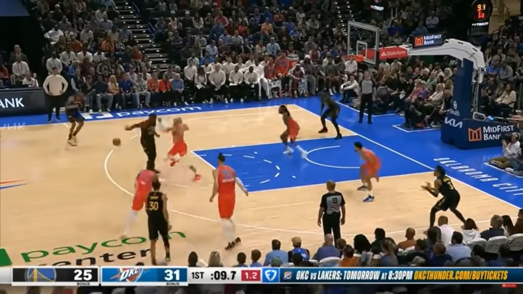 Αυτό έγινε σε προσπάθεια για τρίποντο από τον αναπληρωματικό σούτινγκ γκαρντ των Θάντερ, Αϊζάια Τζο, με τον Κάρι να μπαίνει στον «κύλινδρό» του την ώρα που προσγειωνόταν. Μάλιστα, οι διαιτητές χρειάστηκε να δουν τη φάση σε βίντεο για να πάρουν αυτή την... ιστορική απόφαση.