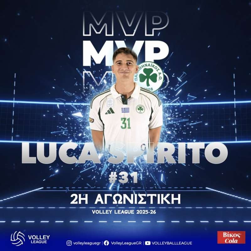Ο Λούκα Σπίριτο ήταν ο κορυφαίος στην εκτός έδρας νίκη του Παναθηναϊκού επί του Ολυμπιακού ΟΝΕΧ με 3-0 σετ στο γυμναστήριο Μελίνα Μερκούρη του Ρέντη.