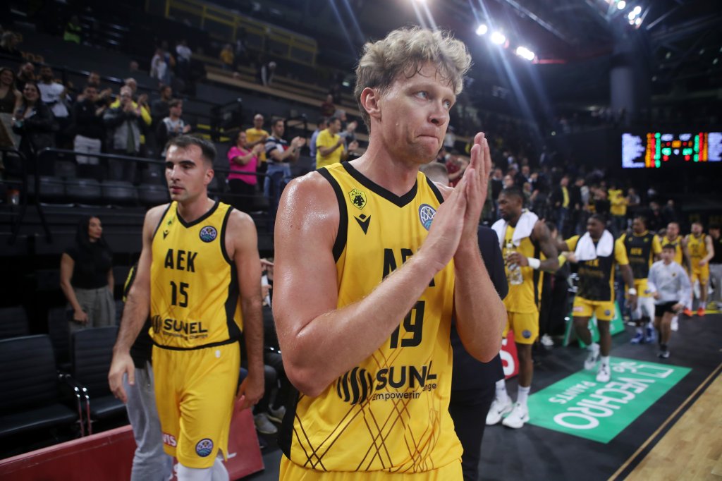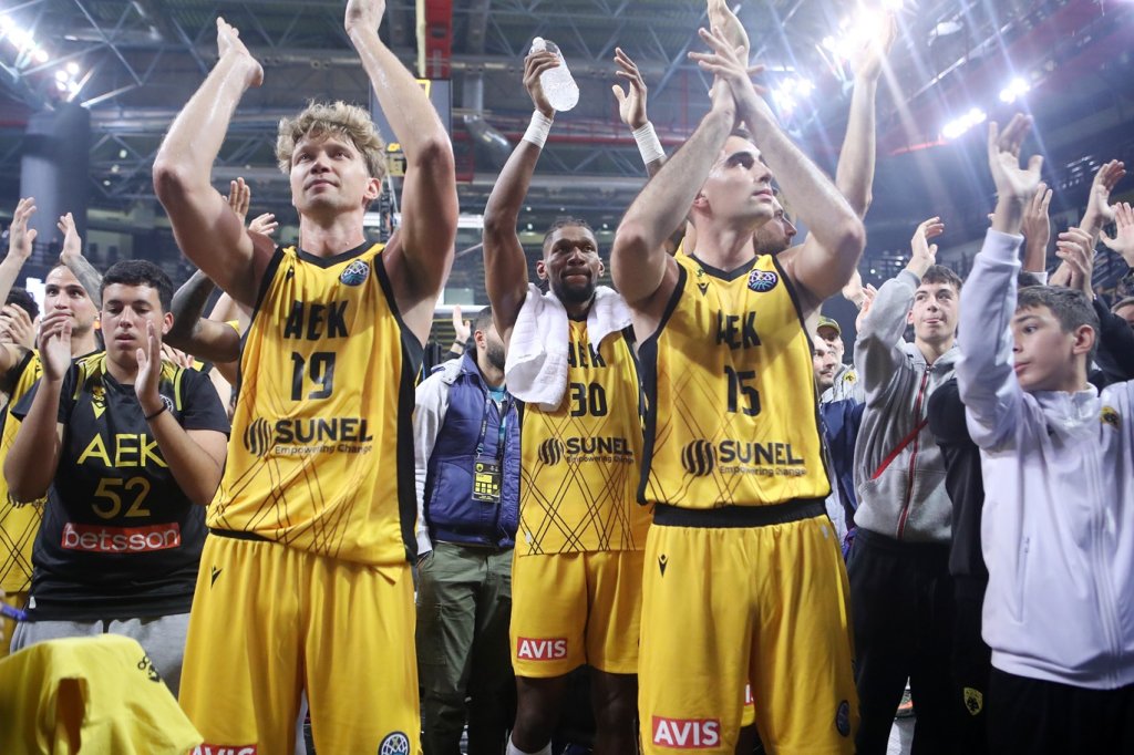 Πολύ όμορφες στιγμές μετά τη νίκη της ΑΕΚ στο παιχνίδι με τη Ρίγα. Οι παίκτες πήγαν στο πέταλο των οργανωμένων και πανηγύρισαν μαζί τους την επιτυχία.
