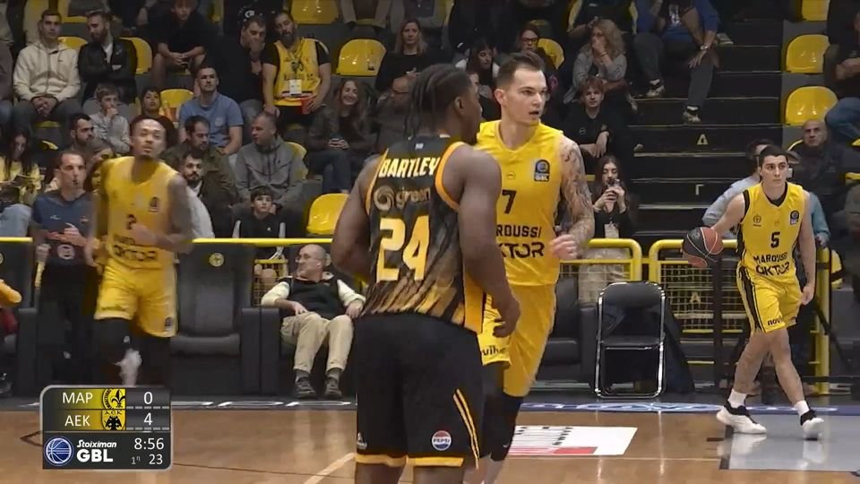Ο Μπάρτλεϊ είχε ένα γεμάτο πρώτο ημίχρονο κόντρα στο Μαρούσι. Ο Αμερικάνος είχε 12 πόντους 4 ριμπάουντ 2 ασίστ. Παράλληλα, κατάφερε να φτάσει και τους 500 πόντους στο Ελληνικό πρωτάθληματα στη διετία του σε αυτό.
