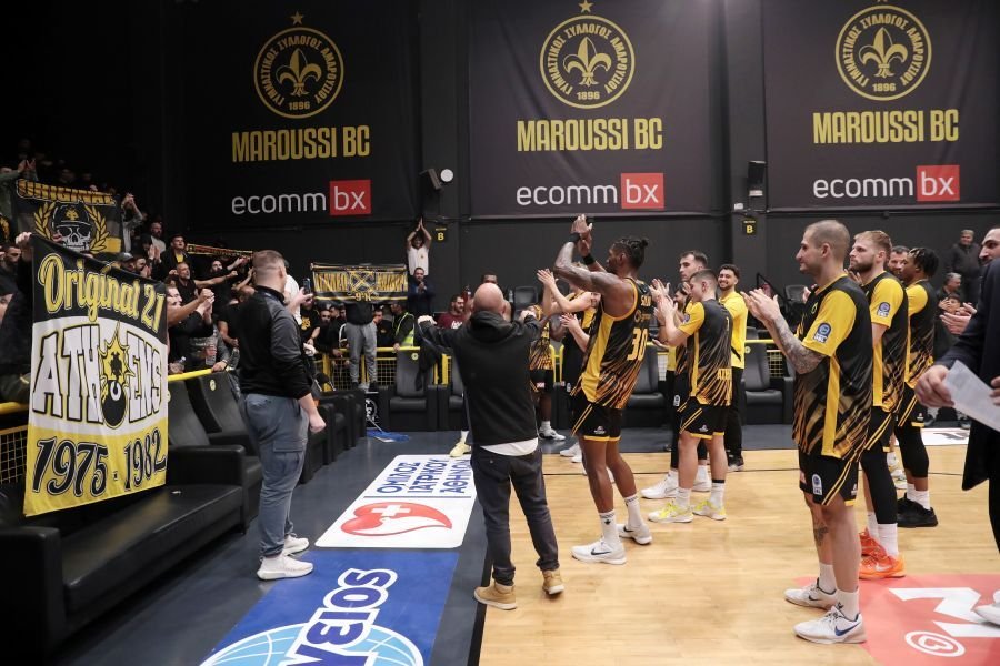 Ούτε στο Μαρούσι μόνη της η Βασίλισσα. Ο κόσμος της ΑΕΚ έδωσε δυναμικό παρων και στην αποψινή μάχη της ΑΕΚ και ήταν δίπλα στον Σάκοτα και τα παιδιά του. Μάλιστα στο φινάλε οι παίκτες πήγαν στο πέταλο και αποθεώθηκαν ενώ ειπαν και το δικό τους ευχαριστώ στον κόσμο για την στήριξη.