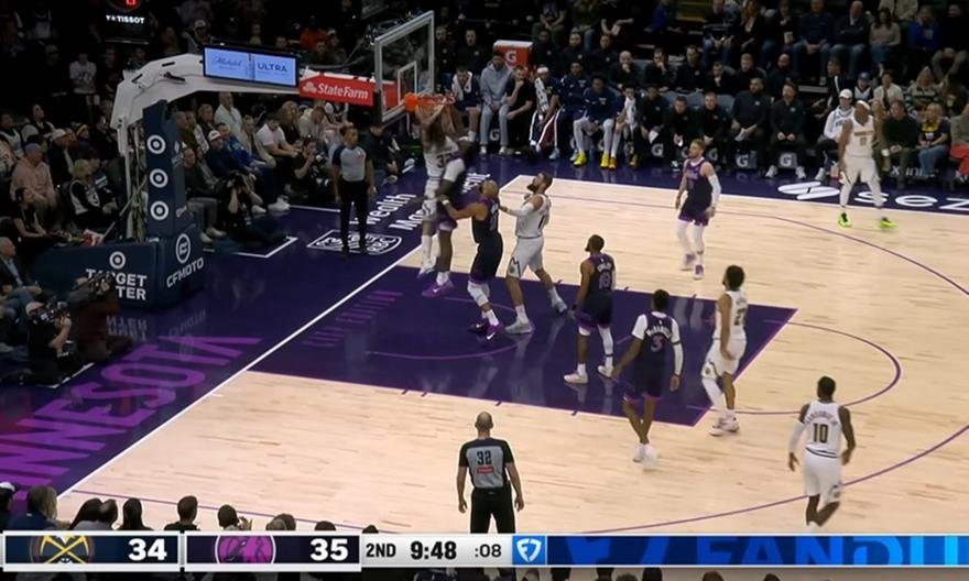 Ο Άαρον Γκόρντον των Ντένβερ Νάγκετς προσέφερε την πιο θεαματική φάση από τα πέντε παιχνίδια, που έγιναν στο NBA. Στις αρχές της δεύτερης περιόδου, στο παιχνίδι με τους Τίμπεργουλβς, ο 30χρονος φόργουορντ, με τρομερό ανάποδο κάρφωμα, πρόσθεσε δυο πόντους στο... σακούλι των Νάγκετς.
