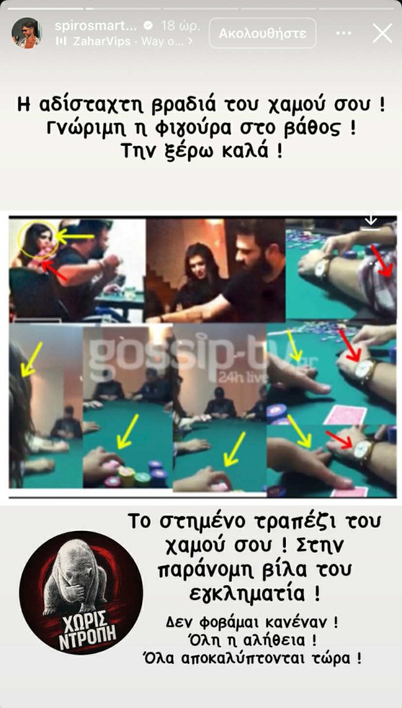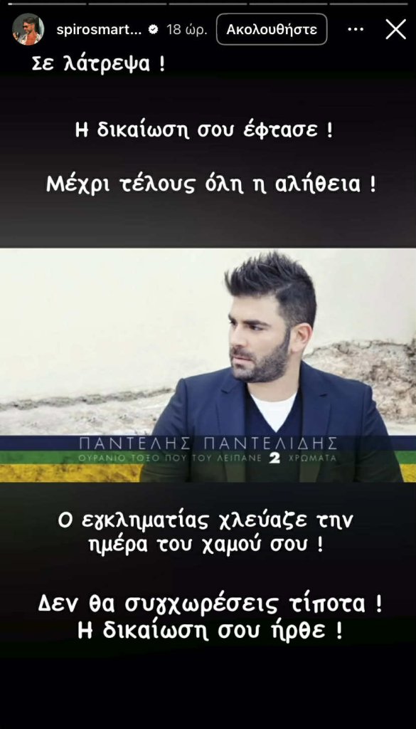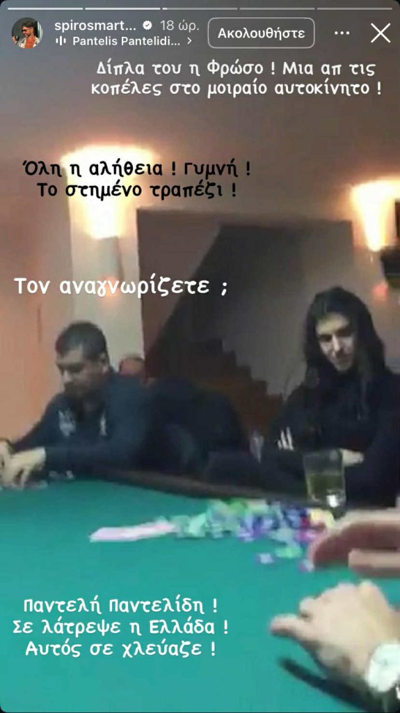 Εξάλλου, αίσθηση προκάλεσαν τα story του Σπύρου Μαρτίκα στο Instagram, από τη βραδιά που ισχυρίζεται ότι ο «εγκέφαλος» της εγκληματικής οργάνωσης, είχε οργανώσει «στημένο τραπέζι» κι «έφαγαν» 250.000 ευρώ από τον Παντελή Παντελίδη την ημέρα που είχε το τροχαίο δυστύχημα.